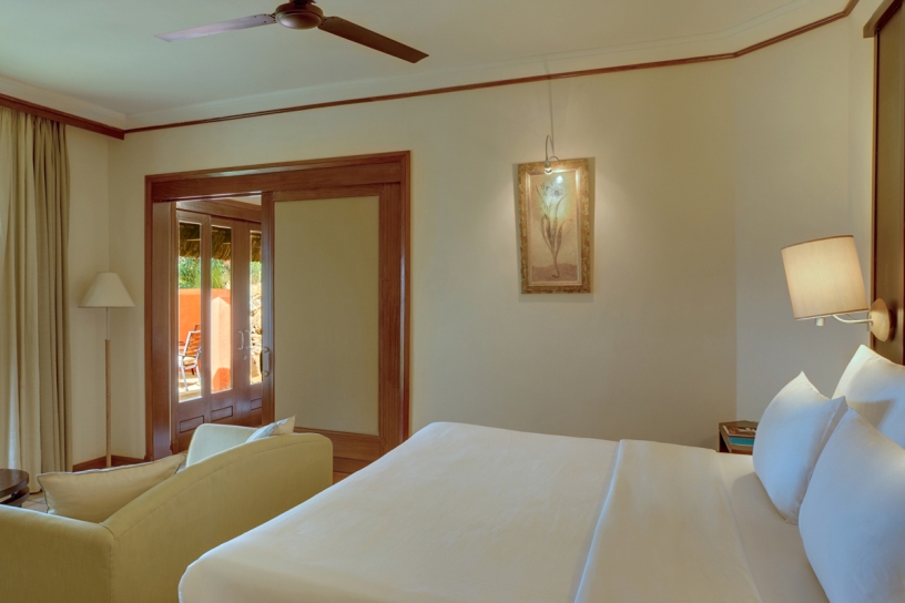 Pokoje: 6 typów pokoi, których wyposażenie obejmuje balkon z widokiem na ogród lub ocean, klimatyzację, wentylator sufitowy, telefon, Mini-bar, zestaw do kawy/herbaty, sejf, telewizję satelitarną, pantofle i szlafrok, darmowy dostęp do Internetu, łazienkę z osobną wanną i prysznicem, lusterkiem do makijażu, suszarką. Pokoje standardowe Superior (43m²), z możliwością dopłaty do widoku na morze, większe pokoje Deluxe (52m²) oraz apartamenty (70m² - 85m²), Willa z prywatną plażą (288m²) i obsługą kamerdynera.