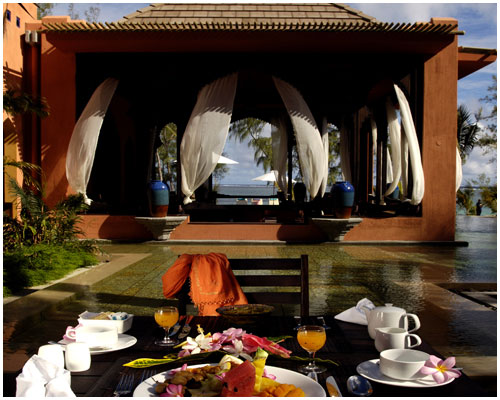 Pokoje: hotel oferuje zakwaterowanie wyłącznie w apartamentach z balkonami lub tarasami, z widokiem na morze, basen lub ogrody oraz 12 prywatnych willach z basenami. We wszystkich apartamentach znajdziemy łóżko królewskie, klimatyzację, wentylator sufitowy, telefon, garderoba, telewizja, telefon, Mini-bar, zestaw do parzenia kawy/herbaty, sejf, darmowy dostęp do WiFi. W łazience znajduje się osobna wanna i duży prysznic, suszarka do włosów, pantofle i szlafrok, lustro do makijażu. Apartamenty standardowe Junior Suite o powierzchni (55m²) mają widok na ogrody, częściowy widok na lagunę. Za dopłatą możliwość zakwaterowania w apartamentach (60m²) z widokiem na basen, z wyjściem na plażę, z pełnym widokiem na lagunę. Dla rodzin przewidziano połączone apartamenty rodzinne (120m²). Można również wybrać zakwaterowanie w przestronnych apartamentach Lagoon Suites (90m²), romantycznych, urządzonych w bieli Honeymoon Suites (90m²) lub ogromnym, luksusowym apartamencie Maharajah Suite (240m²), w którym poza standardowym zakwaterowaniem dostępna jest jadalnia, taras na dachu, jacuzzi oraz usługi kamerdynera.